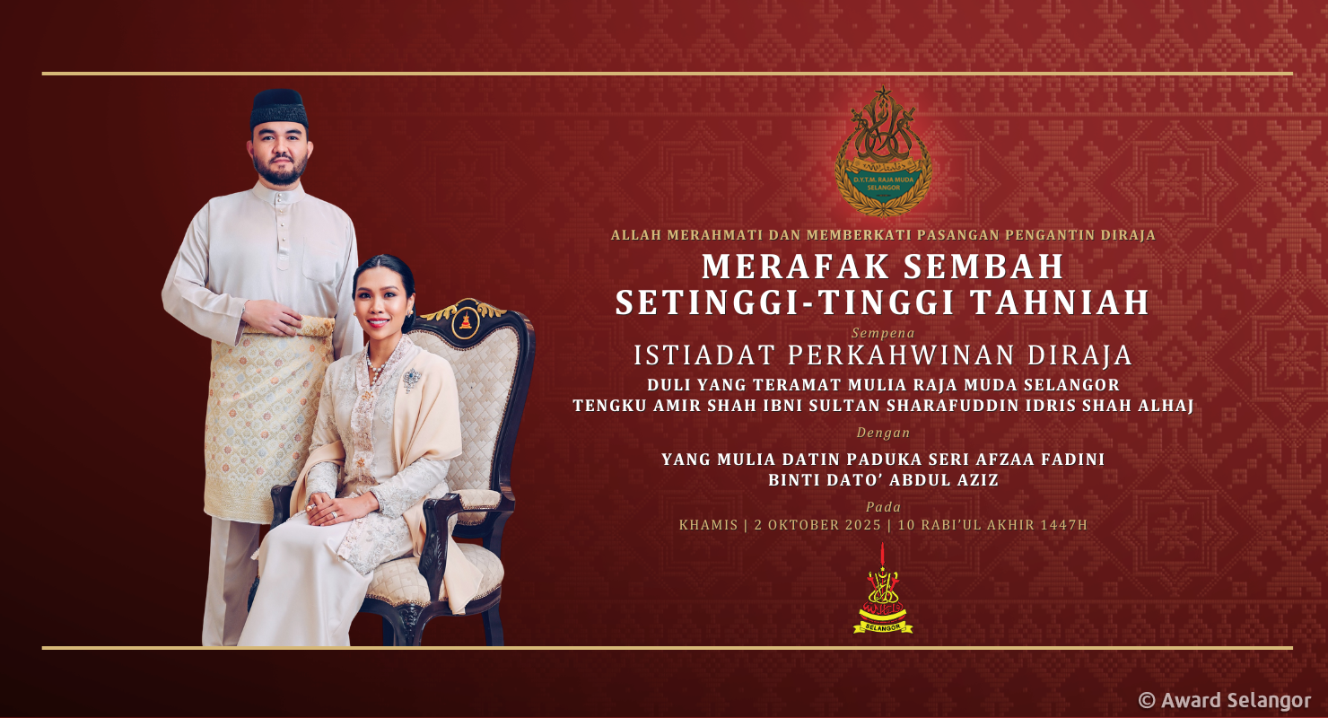 DYTM Raja Muda Selangor Tengku Amir Shah Ibni Sultan Sharafuddin Idris Shah Alhaj selamat diijab kabul dengan suri hati Baginda, Yang Mulia Datin Paduka Seri Afzaa Fadini Binti Dato’ Abdul Aziz di Masjid Istana Diraja, Istana Alam Shah, Klang.