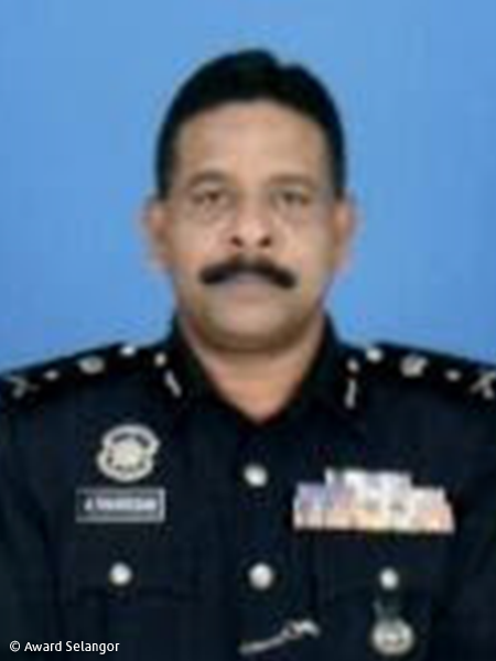 SAC Dato' Thaiveegan A/L Arumugam Anugerah Nama Penuh DBK Darjah Kebesaran Setia Mahkota Selangor (S.M.S.) 2012 Tajuk Warta Jilid 66 No. 387 17-01-2013 Jawatan Disandang Timbalan Ketua Polis Selangor, Polis Diraja Malaysia SAC Dato' Thaiveegan A/L Arumugam Anugerah Nama Penuh DBK Darjah Kebesaran Setia Mahkota Selangor (S.M.S.) Tahun Penganugerahan 2012 Tajuk Warta Jilid 66 No. 387 17-01-2013 Jawatan Disandang Timbalan Ketua Polis Selangor, Polis Diraja Malaysia